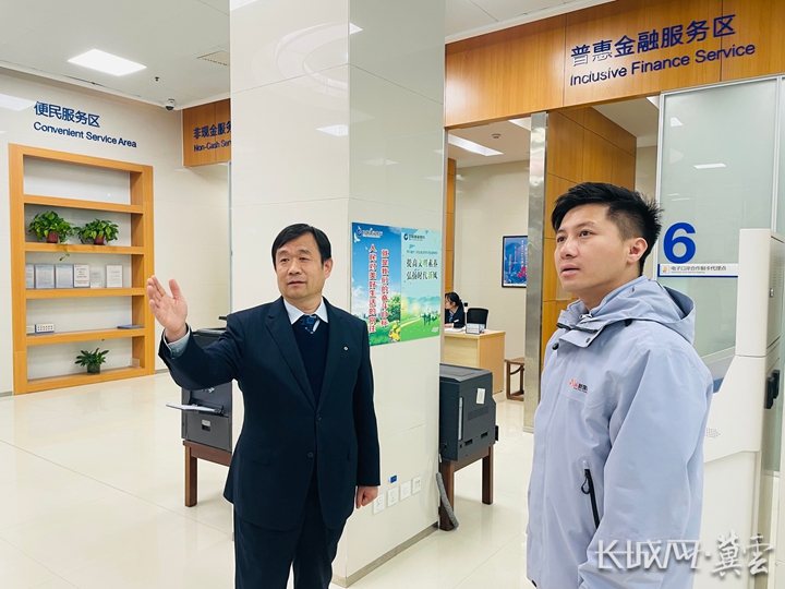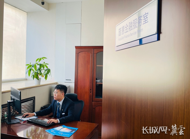 中国建设银行清河支行行长刘文博向记者介绍普惠金融业务模式。长城新媒体记者 段维佳 摄