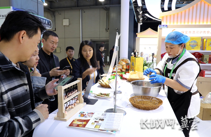 漕河驴肉火烧在第八届进博会上受到参展观众青睐。长城网·冀云客户端 烟成群 摄