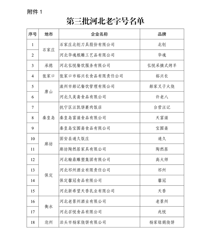 日前,河北省商务厅等4 部门公布了第三批河北老字号名单和第一批河北老字号通过复核名单,截至目前,河北老字号品牌累计达133个。