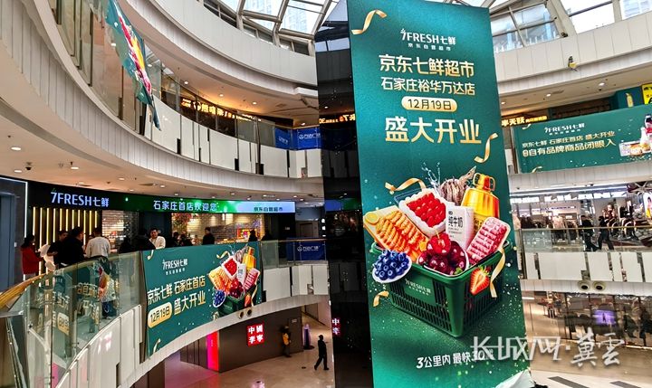 京东七鲜在万达广场的巨幅开业广告。 长城网•冀云客户端记者 郑建卫 摄