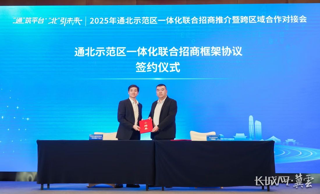 活动现场,北京市通州区投资促进中心与廊坊市商务局签署通北示范区一体化联合招商框架协议,双方将整合招商资源、统一招商口径、联动招商动作,以通北示范区为载体,面向国内外优质企业开展联合招商,合力吸引产业项目落地。北京市协同发展服务促进会与苏州市产业园发展促进会签署资源链接协议,将发挥各自资源优势,促进京津冀与长三角两地企业更好地开展跨区域合作发展。