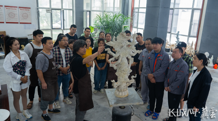 图为高英坡正在为员工进行创作指导。曲阳县翰鼎雕塑集团 供图