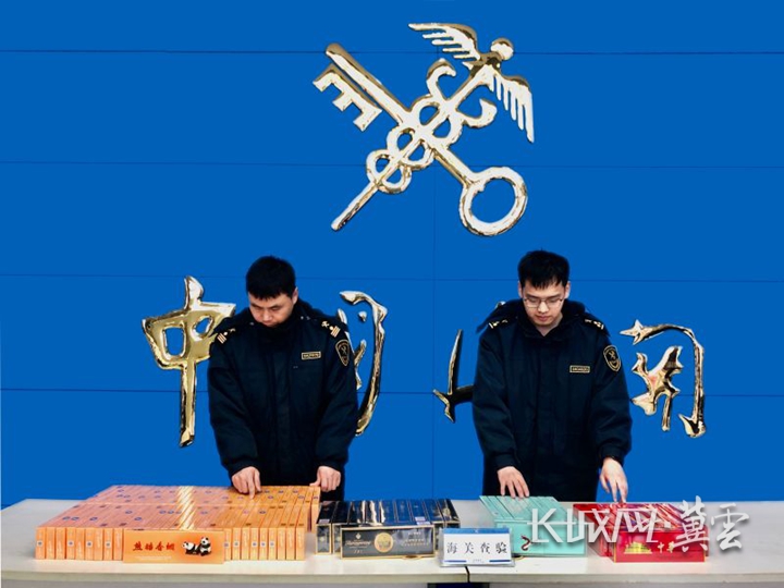 海关人员查验香烟。崔维房 摄