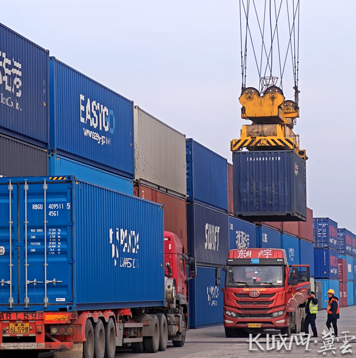 12月10日,位于河北省石家庄市高邑县的石家庄国际陆港场站内被集装箱堆得满满当当,中欧班列往来穿梭,现场一派繁忙。