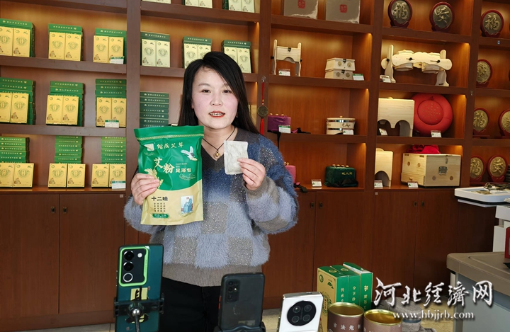 2月25日,在河北常艾坊生物科技有限公司展厅内的直播间,主播赵延向正热情洋溢地对着镜头介绍着各类艾草产品。“天上有太阳,地上有艾草。家人们,咱们馆陶的艾草可是有着悠久历史的彭艾,品质绝对有保障。” 她的声音清脆悦耳,透露出自信与专业。