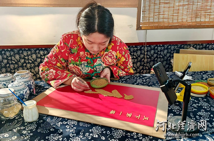 粮画制作直播。 河北经济日报记者 郑建卫 摄