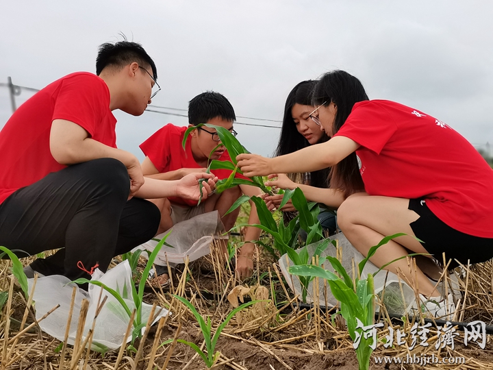 中国农业大学曲周科技小院学生来到田间地头察看农作物长势。