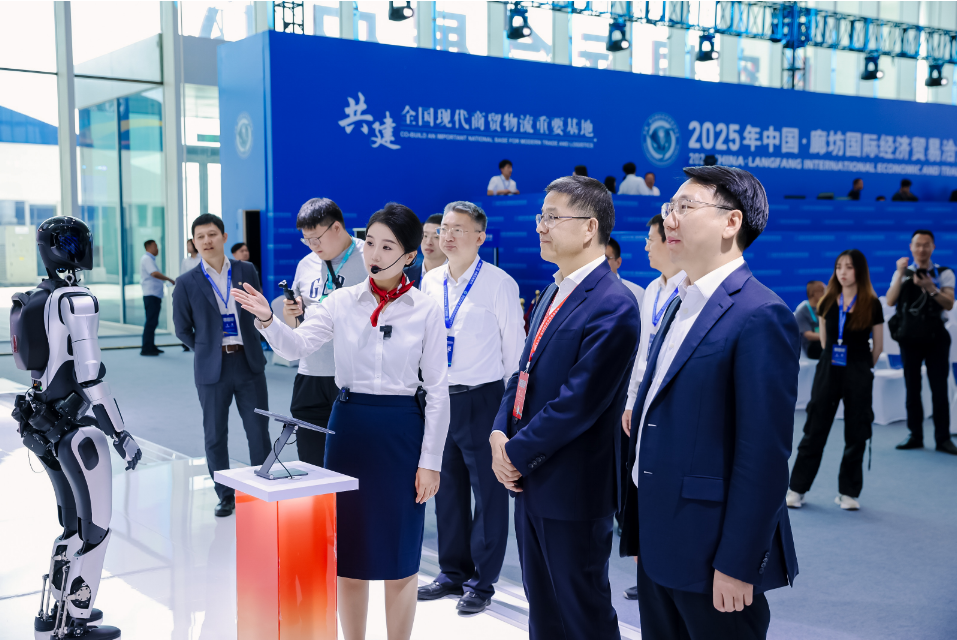 工商银行人行机器人“冀小智”亮相2025年廊坊经洽会 宫轩摄