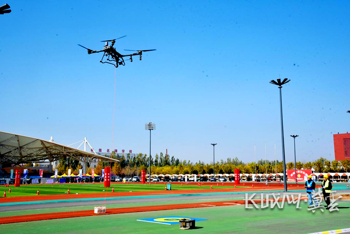 首届“长安猎手杯”全国农用无人机驾驶员职业技能大赛“曲周农信杯”总决赛开幕现场。邯郸市供销社 韩伟鹏 供图