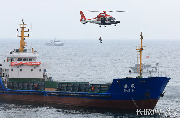 秦皇岛“碧海亮剑”海上溢油和搜救应急综合演习现场。