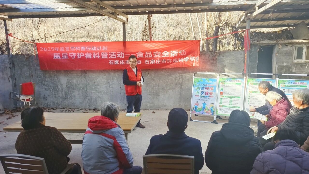 11月21日,石家庄市环境科学学会组织科技志愿者走进平山两岔村开展食品安全志愿服务活动,40余名村民参加活动。