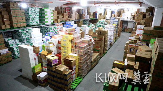 河北天环冷链物流有限公司展示中心商户周丽为客户备货。长城网·冀云客户端记者 张伟 摄