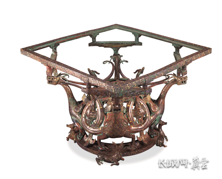 约·会·国宝要讲解的文物之一——错金银四龙四凤铜方案座 河北博物院藏。