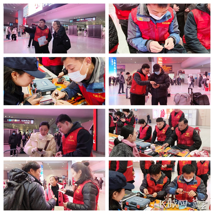 活动现场暖意涌动,爱心汇聚。志愿者们针对旅客出行过程中箱包锁具损坏、箱轮故障、拉锁损坏及眼镜松动等问题,提供免费维修服务。同时结合专业向过往旅客宣传门窗日常保养、装修避坑等实用知识,普及家居维护常识,受到群众好评。人群中,那一抹抹“志愿红”格外显眼。在东广场出站口人流密集处,志愿者们热情为旅客指引答疑。“地铁入口怎么走?”“网约车上车点在哪里?”“怎么到会展中心?”面对一个个问询,他们耐心为过往旅客提供转乘路线咨询,帮助过往旅客顺畅出行。看到有老年人拖着沉重的行李,志愿者们立刻小跑上前,搭手帮忙,解决旅客的燃眉之急。
