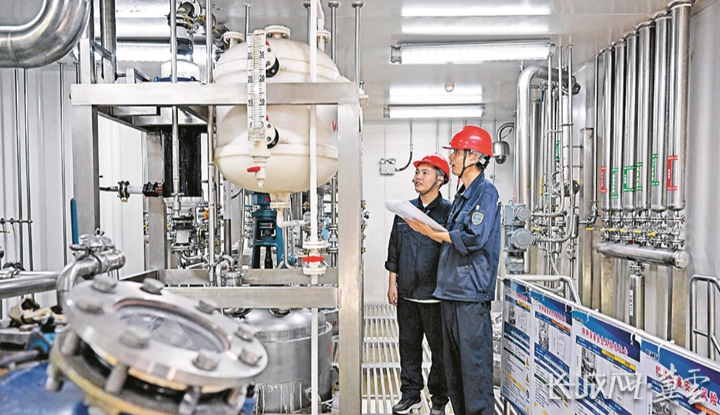 京津冀·沧州生物医药产业园,华润双鹤药业股份有限公司沧州分公司员工记录生产数据。张昊 摄