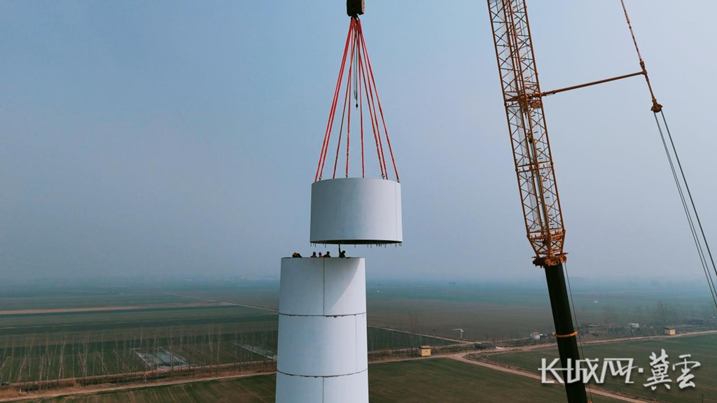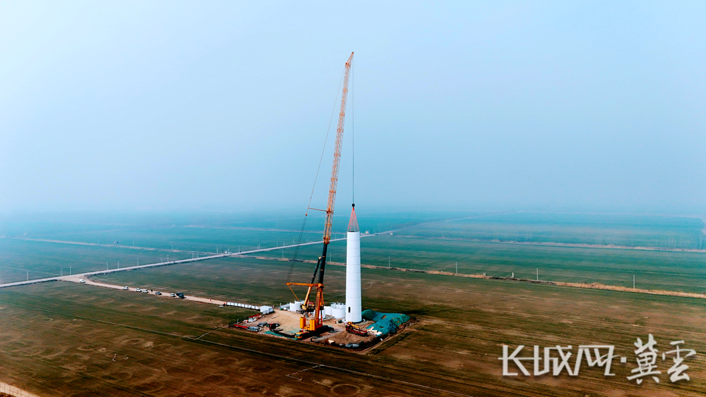 3月28日,位于河北任丘的中国石油华北油田15万千瓦风电项目建设现场,施工人员正进行塔筒(混塔段)吊装作业,一幅绿色能源快速发展的生动画卷正在铺展。