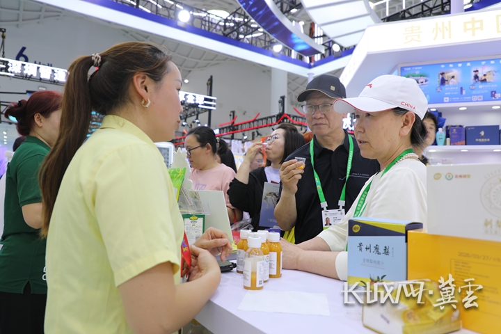河北滋蜂源蜂业负责人姚秋霞(右一)在消博会上洽谈合作。长城网·冀云客户端记者 烟成群 摄